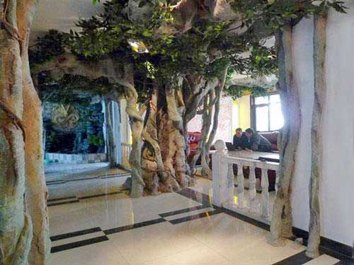 如果甲方一味的压低仿真树价格,那制作的仿真树只能是这样,其实这样的还是好的,这是熟练的小工作品,还能算是仿真树,有的仿真树看上去就是一根粗水泥棍加几片叶子。